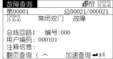 監控器自動記錄發生的所監控的防火門故障及監控系統其他故障記錄,通過“故障查詢”可查詢到所有記錄。