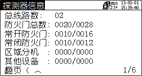 可在設備信息菜單中查詢防火門監控模塊設備信息:監控器所接各類監控設備的在線數和總數。